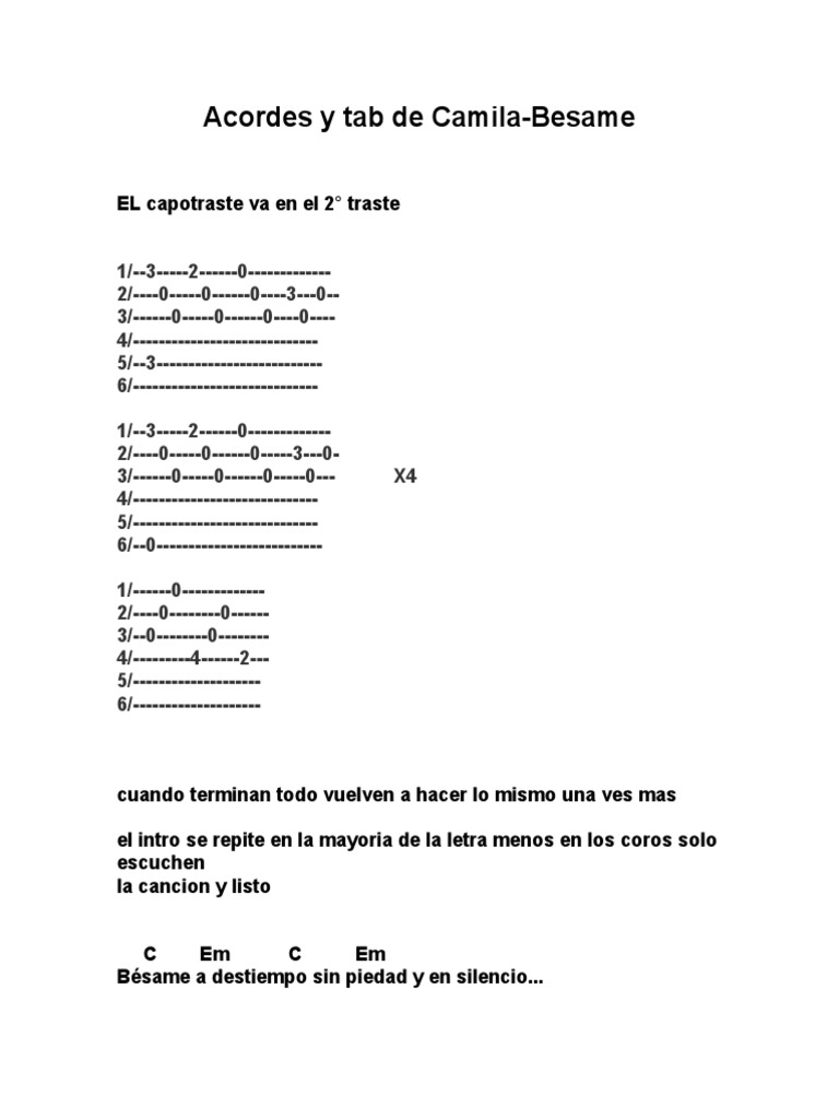 Versiones del Artista Historial. Millones Camila Moreno Letras Acordes y Tabs para Guitarra Bajo y Ukulele. Last edit on Sep 19 2014.
